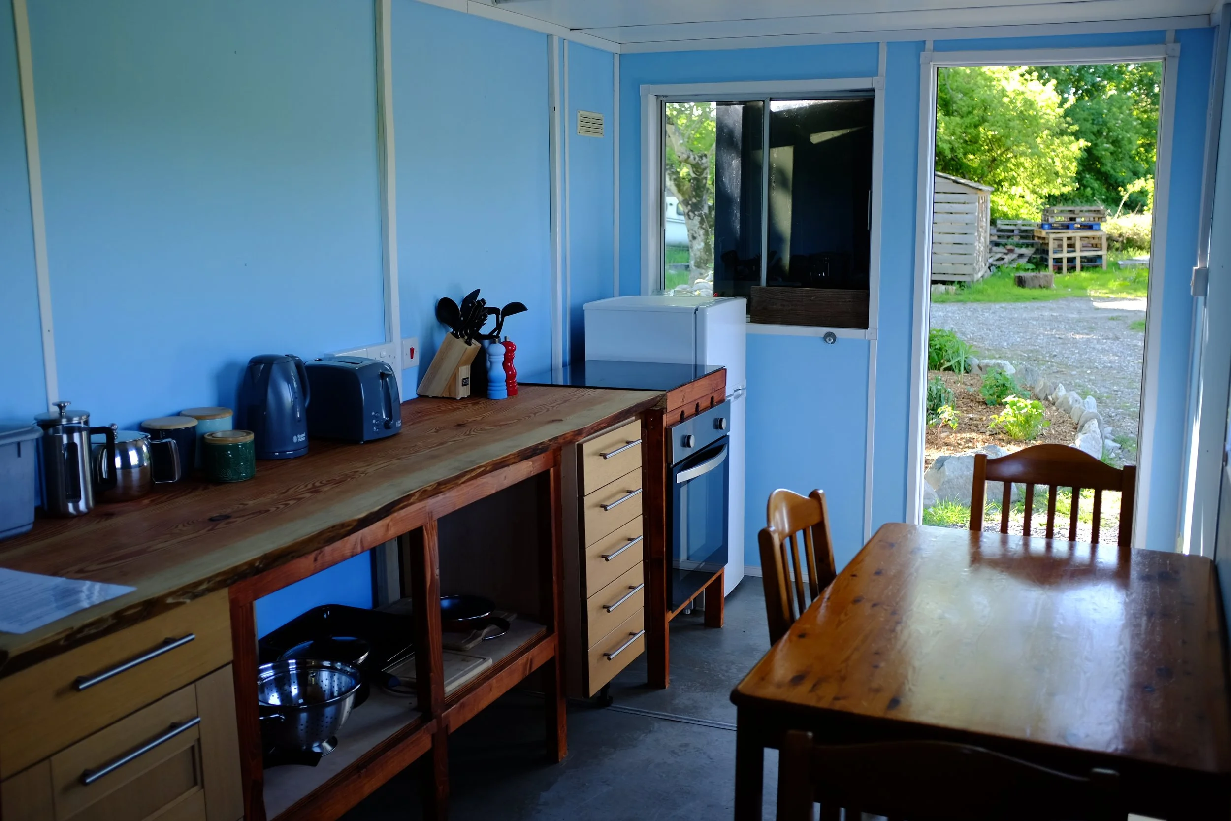 With a total of 10 units, including 3 bell tents and 7 camping pitches, our campsite has something for everyone! We offer the comfort of a fully furnished kitchen open to everyone, 2 compost toilets, and 2 showers.